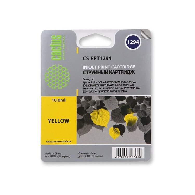 | Краткое описание | Картридж Cactus CS-EPT1294 желтый для Epson B42/BX305/BX305F/BX320/BX525/BX625/SX420/SX425/SX525/SX623 (10 мл) (CSEPT1294) |
