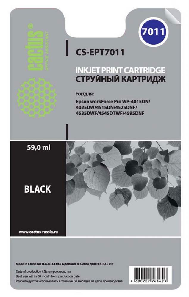 | Краткое описание | Картридж Cactus CS-EPT7011 черный для Epson 4015/4020/4025/4095/4515/4525 (59 мл) (CSEPT7011) |