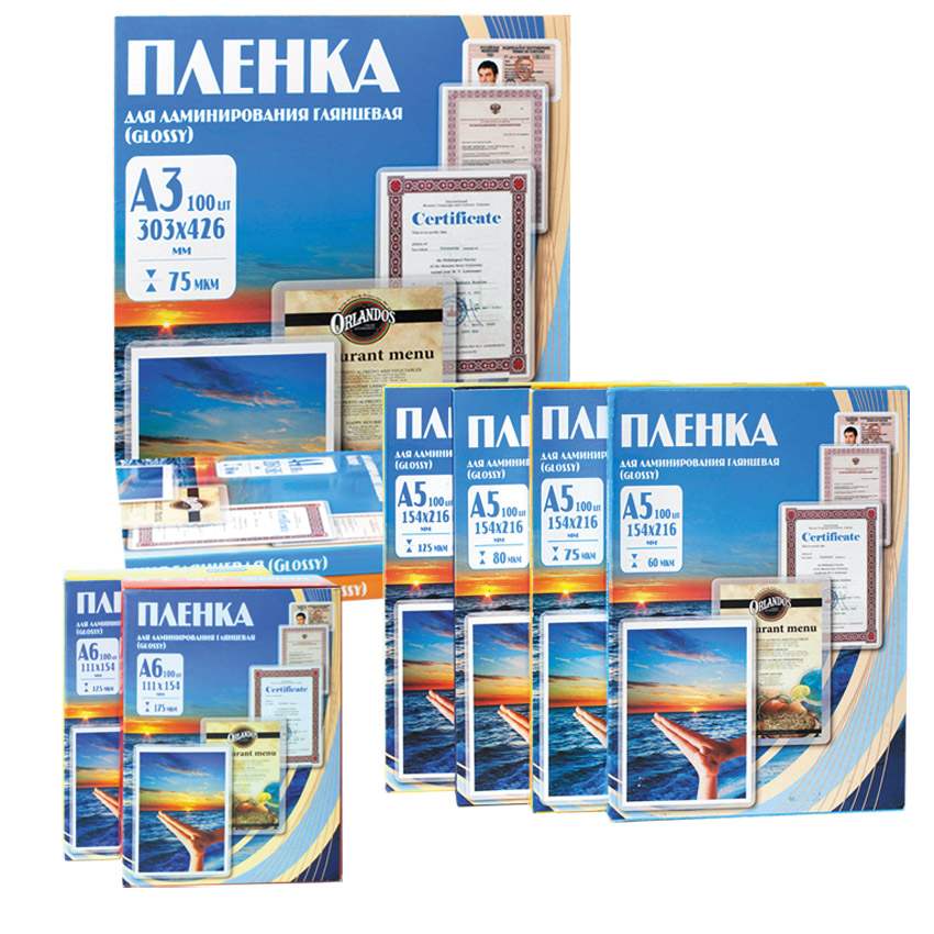 Краткое описание | Пленка для ламинирования глянцевая, 154х216 мм, A5+, 150 мкм (100 шт.) |